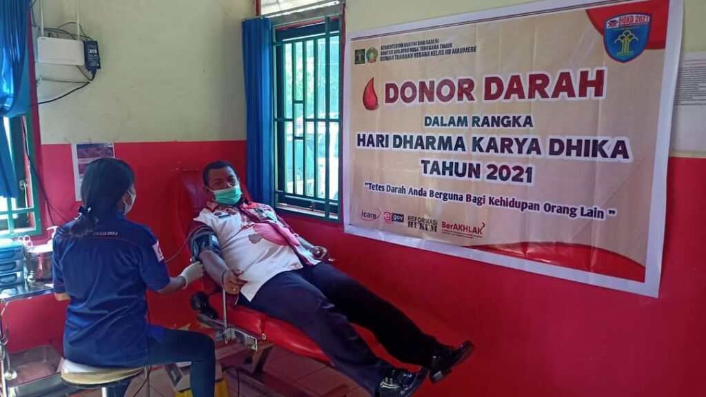MAUMERE-Rumah Tahanan Negara (Rutan) Kelas IIB Maumere Kanwil Kemenkumham NTT melaksanakan Donor Darah dalam rangka memperingati Hari Dharma Karyadhika Tahun 2021.