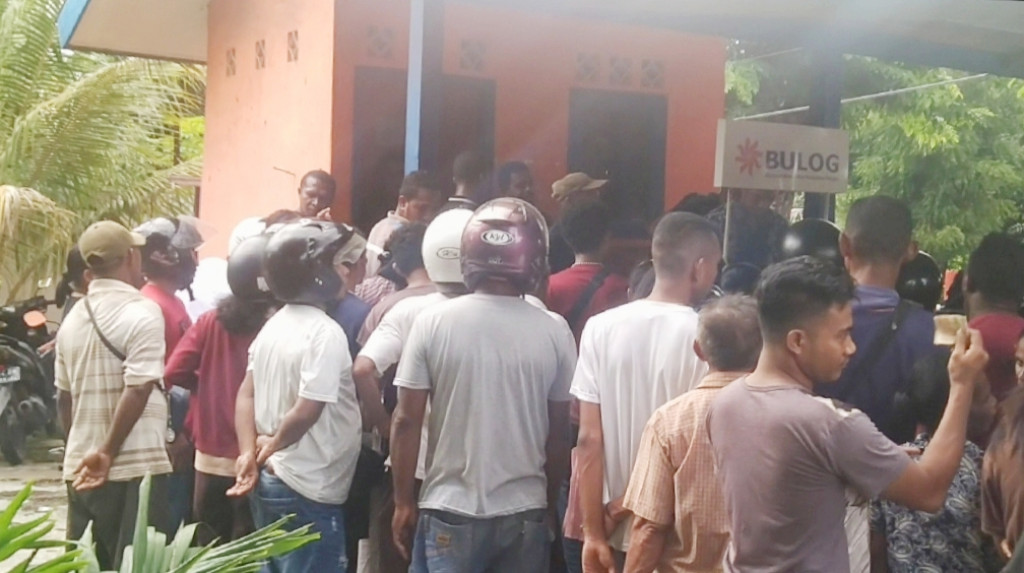 MAUMERE-Halaman Kantor Bulog Sub Divisi Regional Maumere di Jalan Jendral Ahmad Yani, Kota Maumere, Kabupaten Sikka, Provinsi NTT, setiap harinya pada jam kantor selalu dipadati oleh ratusan warga masyarakat yang datang untuk berbelanja beras yang dijual dengan harga terjangkau di Kantor Bulog Maumere dalam Operasi Pasar Murah tersebut.