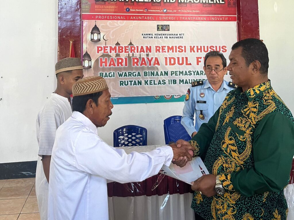FLORESPEDIA.ID-Rumah Tahanan Negara Kelas IIB Maumere hari ini Sabtu (22/04) memberi remisi khusus Hari Raya Idul Fitri tahun 2023 kepada 8 Warga