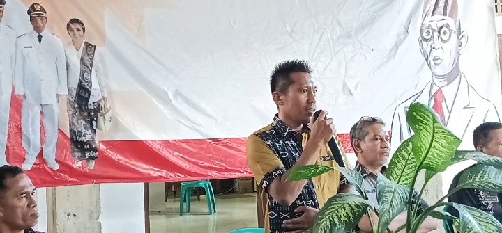 Keterangan foto:Mantan operator Dinas PKO Sikka, Iswadi saat berbicara di hadapan para guru sertifikasi yang menggelar demo, Kamis (20/7/2023) sore. Foto:Mario WP Sina.