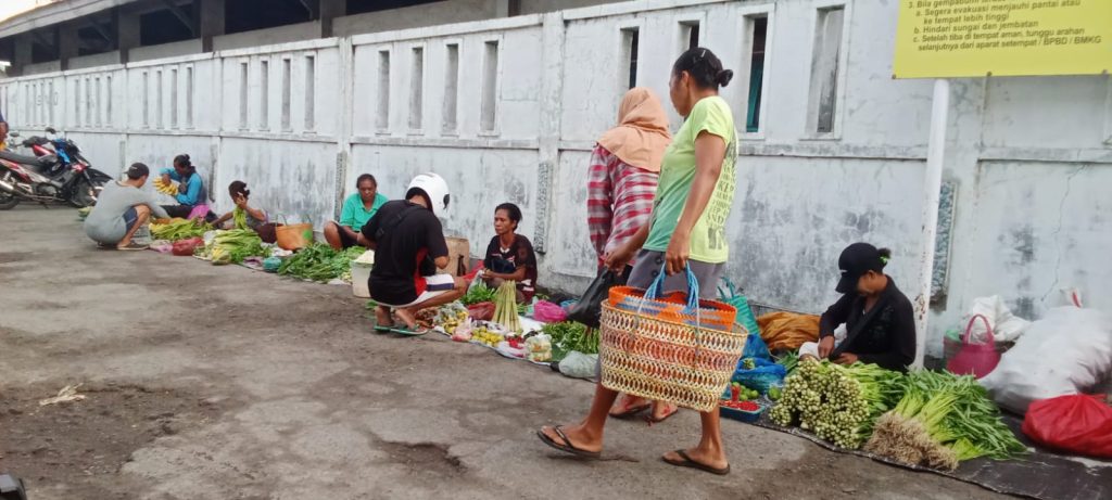 “Kalau saya jualan disini barang dagangan habis terjual dari pada di pasar Alok maupun di pasar Tingkat banyak dagangan yang sisa. Apalagi sayuran kan cepat rusak kalau tidak laku, ” ujarnya.