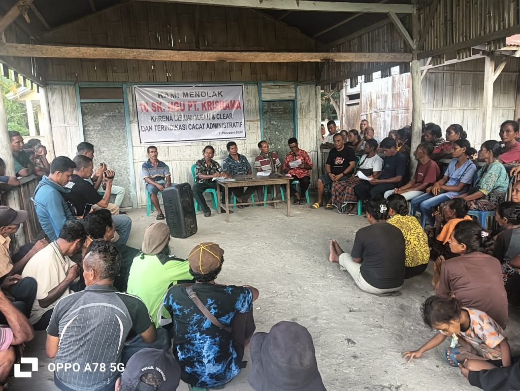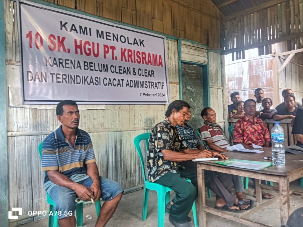 MAUMERE-Masyarakat Adat Tana Pu’an Soge Natarmage dan Tana Pu’an Goban Runut di Kecamatan Talibura, Kabupaten Sikka menyatakan keberatan dan menolak SK.HGU PT. Kristus Raja Maumere (Krisrama) yang telah dikeluarkan oleh Kepala Wilayah Kantor Badan Pertanahan Nasional (BPN) Nusa Tenggara Timur atas 10 bidang tanah negara bekas HGU PT. Diag.
