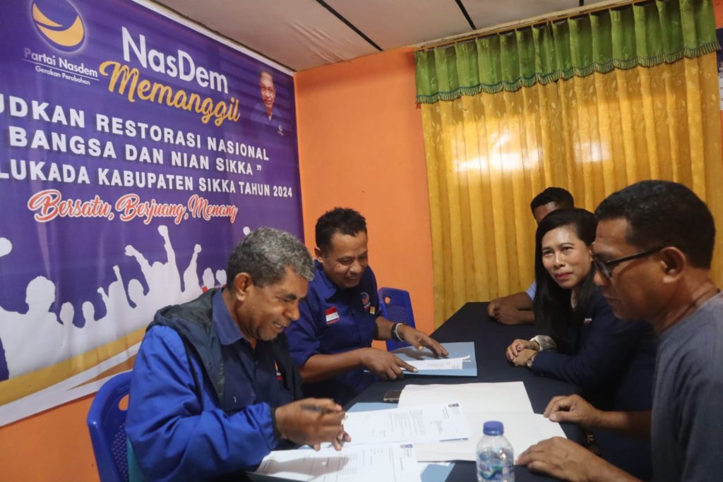 Hadir pada saat pendaftaran, Ketua DPD NasDem Sikka, Romanus Woga, Sekertarid DPD NasDem Sikka, Ipi Seli Seng, Ketua Bapilu, Rafael Raga, Ketua Tim Tujuh, Alex Agato, Anggota DPRD Yosef Nong Soni, dan jajaran DPC lainnya.