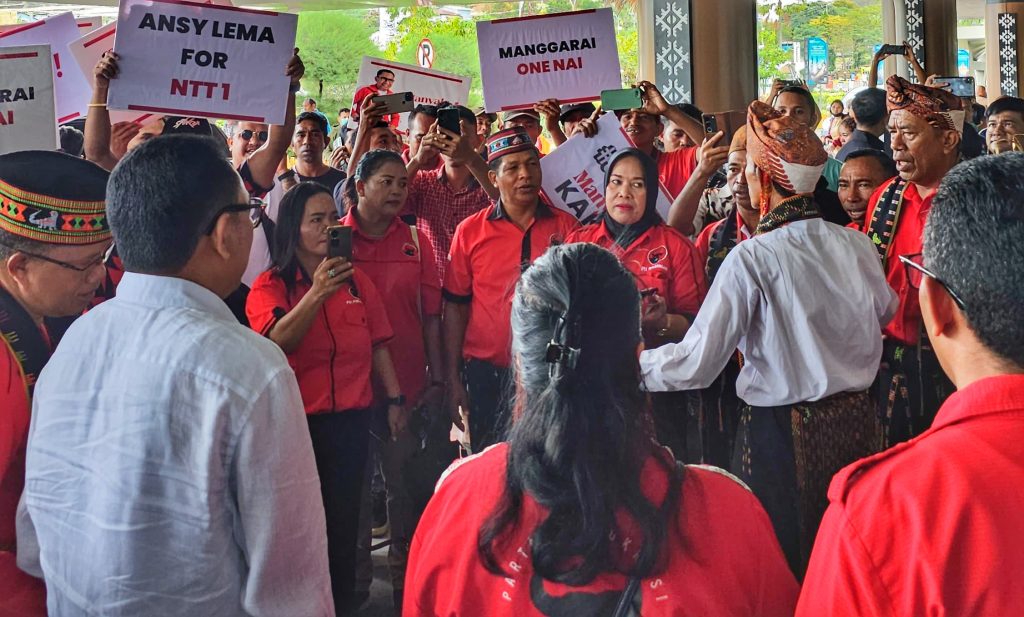 Ratusan relawan tampak menyaksikan dengan khidmat prosesi adat upacara penyambutan tamu terhormat itu. Beberapa poster bertuliskan #BetaCintaNTT, Manyala Kaka!, Manggarai One Nai, hingga Ansy Lema for NTT 1, diangkat tinggi-tinggi membuat semakin meriah suasana.