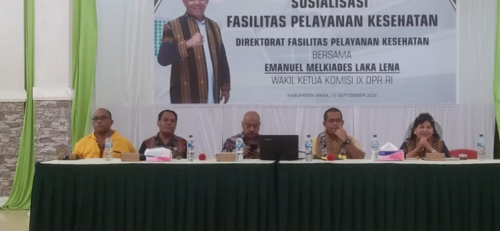 MAUMERE-Wakil Ketua Komisi IX DPR RI, Emanuel Melkiades Laka Lena menggelar Sosialisasi Fasilitas Kesehatan di Kabupaten Sikka dengan menggandeng Kementerian Kesehatan, di Aula Mardiwiyata Maumere, Kamis (12/9/2024).