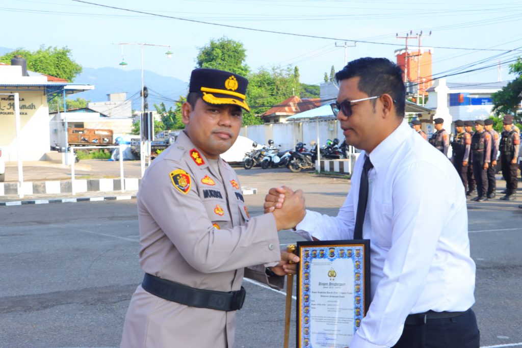 Upacara pemberian penghargaan digelar pada Senin (14/4/2025) pukul 07.30 WITA di Lapangan Apel Polres Sikka.