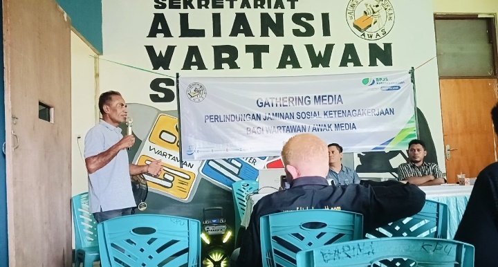 Ketua AWAS, Mario WP Sina, dalam sambutannya menekankan pentingnya perlindungan sosial bagi wartawan yang sering bekerja dalam kondisi berisiko tinggi namun kurang terlindungi secara formal.