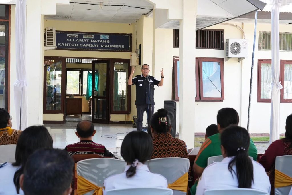 Hal itu disampaikan dalam pertemuan bersama UPTD Pendapatan Daerah Kabupaten Sikka, kepala dan perwakilan UPTD Provinsi di Kabupaten Sikka yang berlangsung di Kantor Samsat Maumere, Sabtu (6/9/2025).