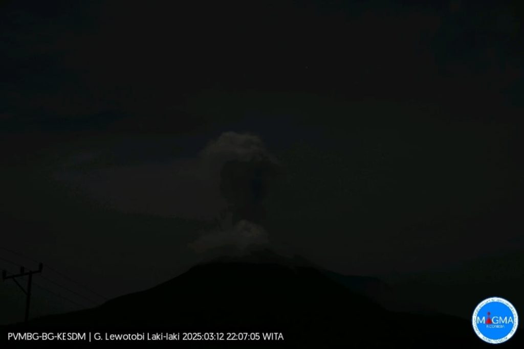 Flores Timur-Gunung Lewotobi Laki-laki di Nusa Tenggara Timur mengalami erupsi pada Selasa, 12 Maret 2025, pukul 22.03 WITA.