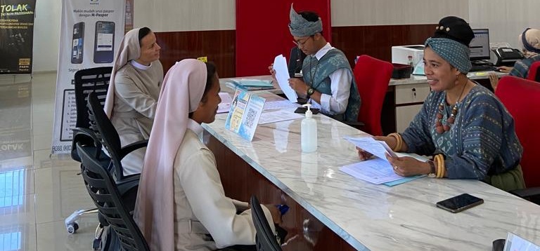 Dengan balutan pakaian adat, petugas Kantor Imigrasi Kelas II TPI Maumere memberikan pelayanan yang ramah, bahasa yang santun serta melayani dengan bersahabat.